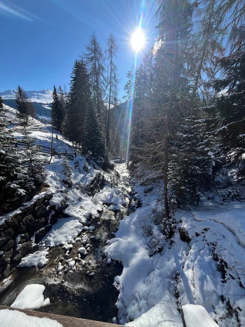 Dinsdag het is wandelochtend. De begeleiding heeft gekozen om de Stafelalp af te gaan lopen. Vol goede moed sta ik op, het is vijf graden met een zonnetje en fris windje. We beginnen met een stukje omhoog lopen, voor een prachtig uitzicht maar ook zodat we even bij de diertjes kunnen kijken. Er zit een boerderijtje met eenden en zwijnen. Het erf wordt bewaakt door een Berner en een Border. Na de nodige hondenknuffels en selfies begin ik aan de afdaling, zigzaggend wandel ik samen met Anne (begeleiding) en Marjolijn (reisgenoot) 4,2 kilometer naar beneden. Door het frisse windje krijg ik het gevoel alsof ik aan het uitwaaien ben op het strand. Het is een heerlijke wandeling.